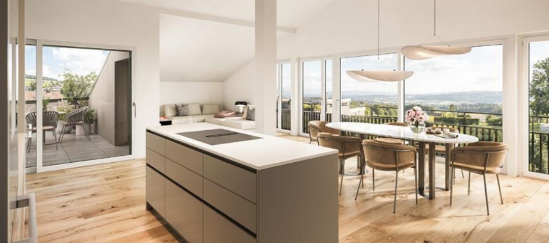 Die 23 Eigentumswohnungen verteilen sich auf die Häuser A, B und C; Haus C besteht aus zwei aneinandergebauten Gebäudeteilen mit eigenen Eingängen. Jede Wohnung überzeugt durch individuelle Grundrisse, spannende Layouts und einen Ausbaustandard im gehobenen Segment, der modernen Komfort mit zeitloser Eleganz verbindet. Die Innenräume bestechen durch lichtdurchflutete Wohn- und Essbereiche, offene Küchen, praktische Zweitbäder sowie Réduits, die zusätzlichen Stauraum schaffen. Gut geschützte Loggien mit raumhohen Glasschiebetüren oder Dachbalkone erweitern den Wohnraum ins Freie, schaffen helle, freundliche Lebensräume und laden zum Verweilen ein. Besonders die Dachwohnungen begeistern mit einer sensationellen Aussicht über Oberrohrdorf und die umliegende Landschaft – ein einmaliger Panoramablick, der den Wohnkomfort auf ein neues Niveau hebt.