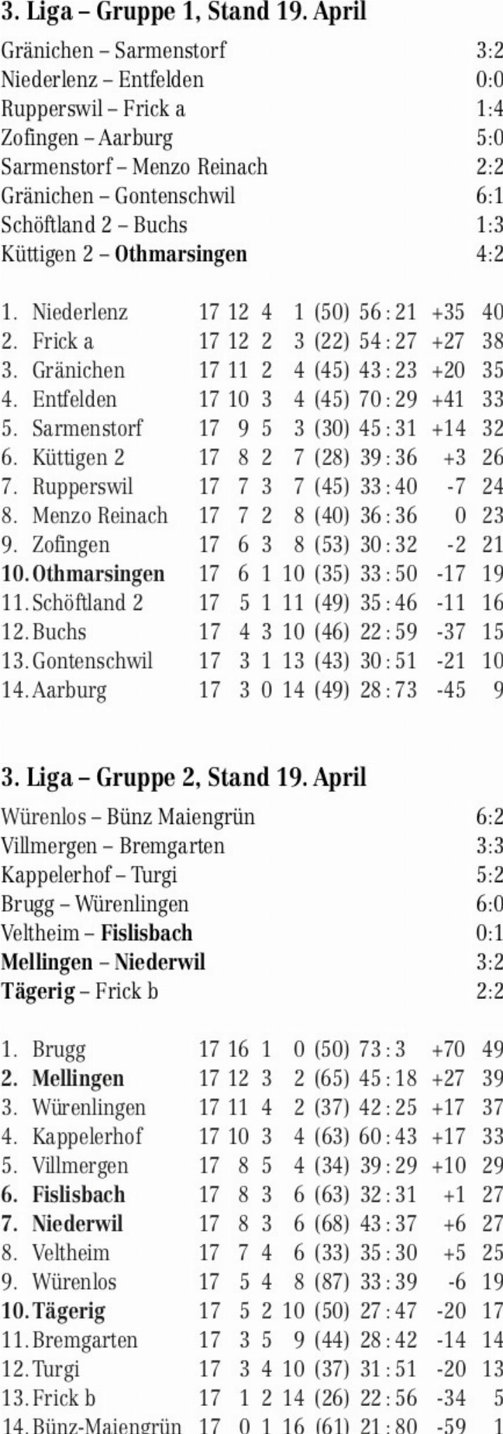 21.04.2026 SportFür die Rangierung ist der Quotient aus der Anzahl Strafpunkte und der Anzahl tatsächlich auf dem Spielfeld ausgetragenen Meisterschaftsspiele abzustellen (Strafpunkte geteilt durch ausgetragene Spiele). Reglement betreffend Wertung der Strafpunkte in der Rangliste.