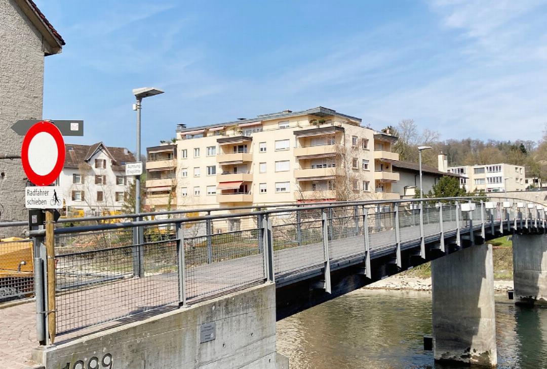 Das allgemeine Fahrverbot auf dem Städtlisteg über die Reuss ist umstritten. Einwendungen gingen bei der Stadt ein, darunter eine von Pro Velo Region Baden.