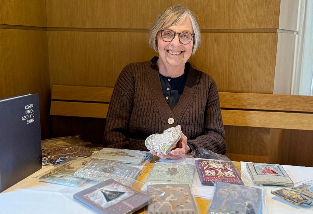 17.10.2025 Region Rohrdorferberg, Region ReusstalDie Berner Künstlerin Regula Schneider kreiert kunstvoll bestickte Schutzkissen – eines ist der Heiligen Justa gewidmet
