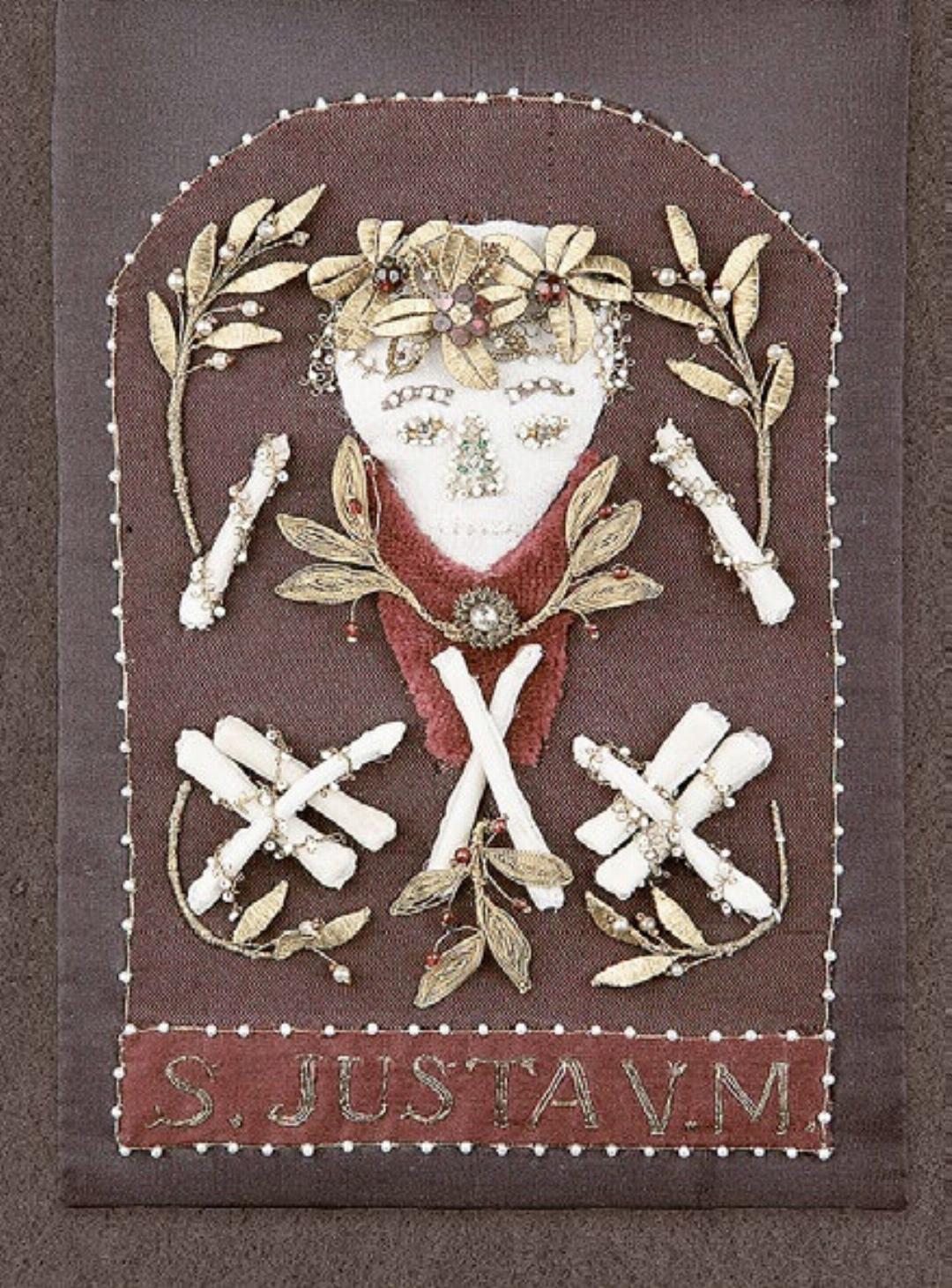 Die Berner Künstlerin Regula Schneider kreiert kunstvoll bestickte Schutzkissen – eines ist der Heiligen Justa gewidmet