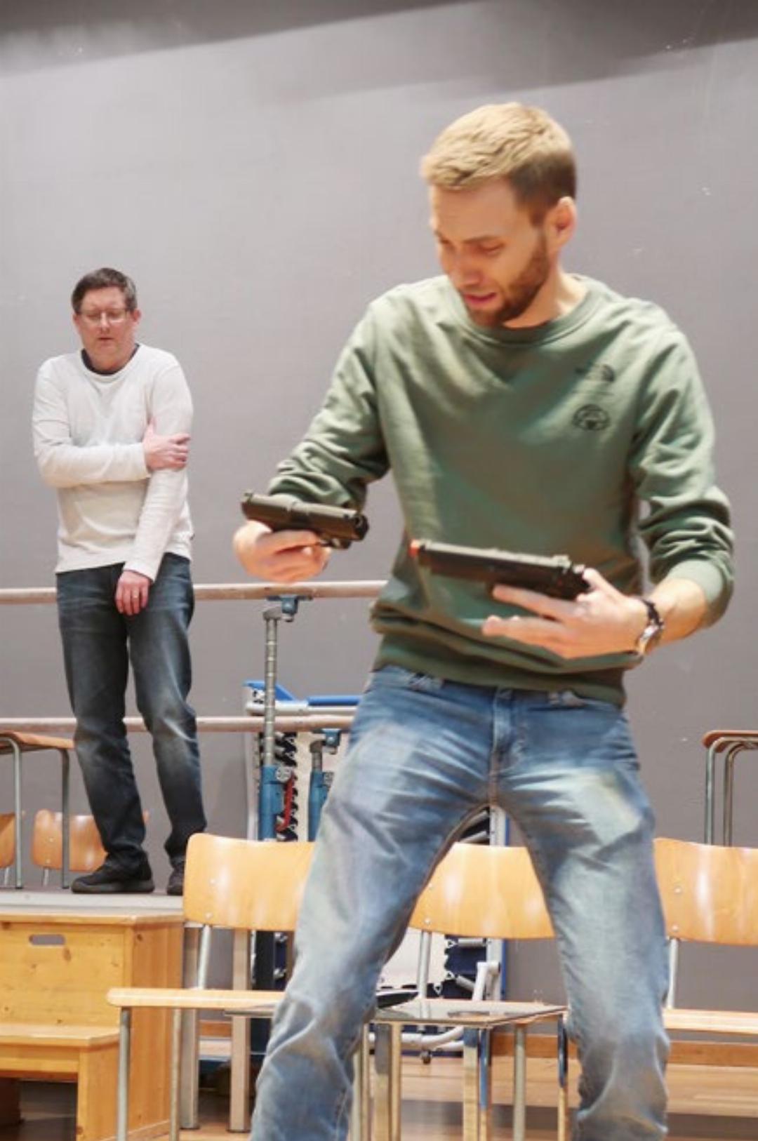 Die Theatergruppe studiert in diesen Wochen ihr Stück «Operation Balkon» ein – dabei kommt eine Schreckschusspistole zum Einsatz