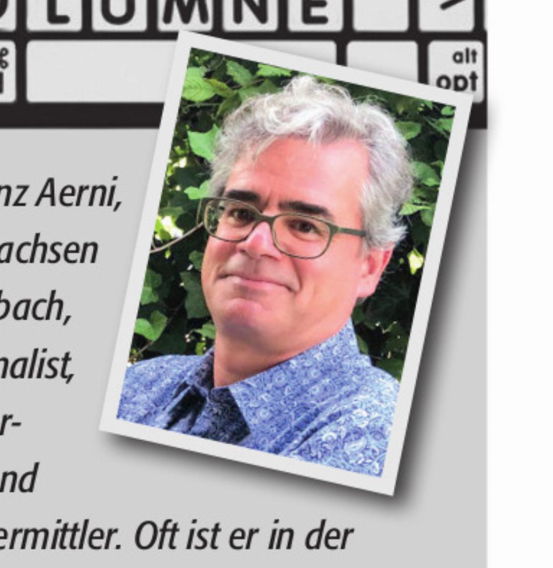 Urs Heinz Aerni, aufgewachsen in Fislisbach, ist Journalist, Literatur- agent und Kulturvermittler. Oft ist er in der Natur – auch im Reusstal – anzu- treffen, wenn er als Feldornithologe für Vereine, Firmen und andere Gruppen mit ...