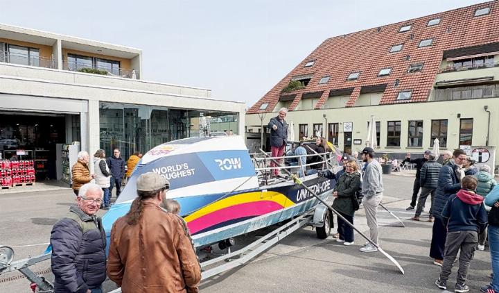 Rudern. Am Samstag zeigte die Crew von «United4Hope», die im Dezember an «The World’s Toughest Row» über den Atlantik teilnehmen wird, ihr Boot «Heide» auf dem Guggerplatz in Fislisbach. Die Aktion stiess auf viel Interesse: Den ganzen Tag ...