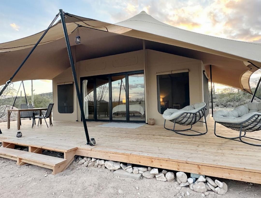 Es gibt Menschen, die brauchen die Berge und Seen. Ich brauche diese Weite», schwärmt Cornelia Hager, als sie via Whatsapp-Telefonie von ihrer Faszination für die Wüstenlandschaft Arizonas erzählt. Eine Ranch in der Sonora-Wüste, die mit ihren mächtigen Saguaro-Kakteen wie eine klassische Westernkulisse aussieht, ist heute ihr neues Zuhause – und das ihrer beiden Kinder Philipp (14) und Leonie (11), die sich hier ebenfalls schon richtig heimisch fühlen. Aber der Reihe nach: Wie verschlug es die Familie von Niederrohrdorf überhaupt in den Südwesten der USA? Und was bitteschön ist «Glamping»? Bereits vor 25 Jahren bei einem ersten Besuch in Phoenix/Arizona habe sie sich in die Landschaft verliebt, erzählt die deutsch-schweizerische Doppelbürgerin, die 2007 aus Köln in die Schweiz kam. Vor ihrer Auswanderung nach Amerika war sie Geschäftsführerin der Pferderennbahn Zürich-Dielsdorf und pendelte täglich zwischen Zürich und Niederrohrdorf, wo die Familie lebte und die Kinder auch zur Schule gingen. «Glamping» ist genau genommen eine Wortkreuzung aus Glamour und Camping. «Glamping ist eine Übernachtung in der Natur, aber ohne auf Komfort zu verzichten», fasst es Cornelia Hager zusammen. Die Idee, in den USA ein Resort für Camper mit gewissem Anspruch zu eröffnen, sei über längere Zeit gereift, erzählt Hager. Sie selbst machte zuvor mehrfach im Westen der USA Glamping-Urlaub. Erfahrung in der Hotellerie hatte die gelernte Betriebswirtschafterin selbst zwar nicht, dafür jede Menge Erfahrung mit dem Organisieren von Events.