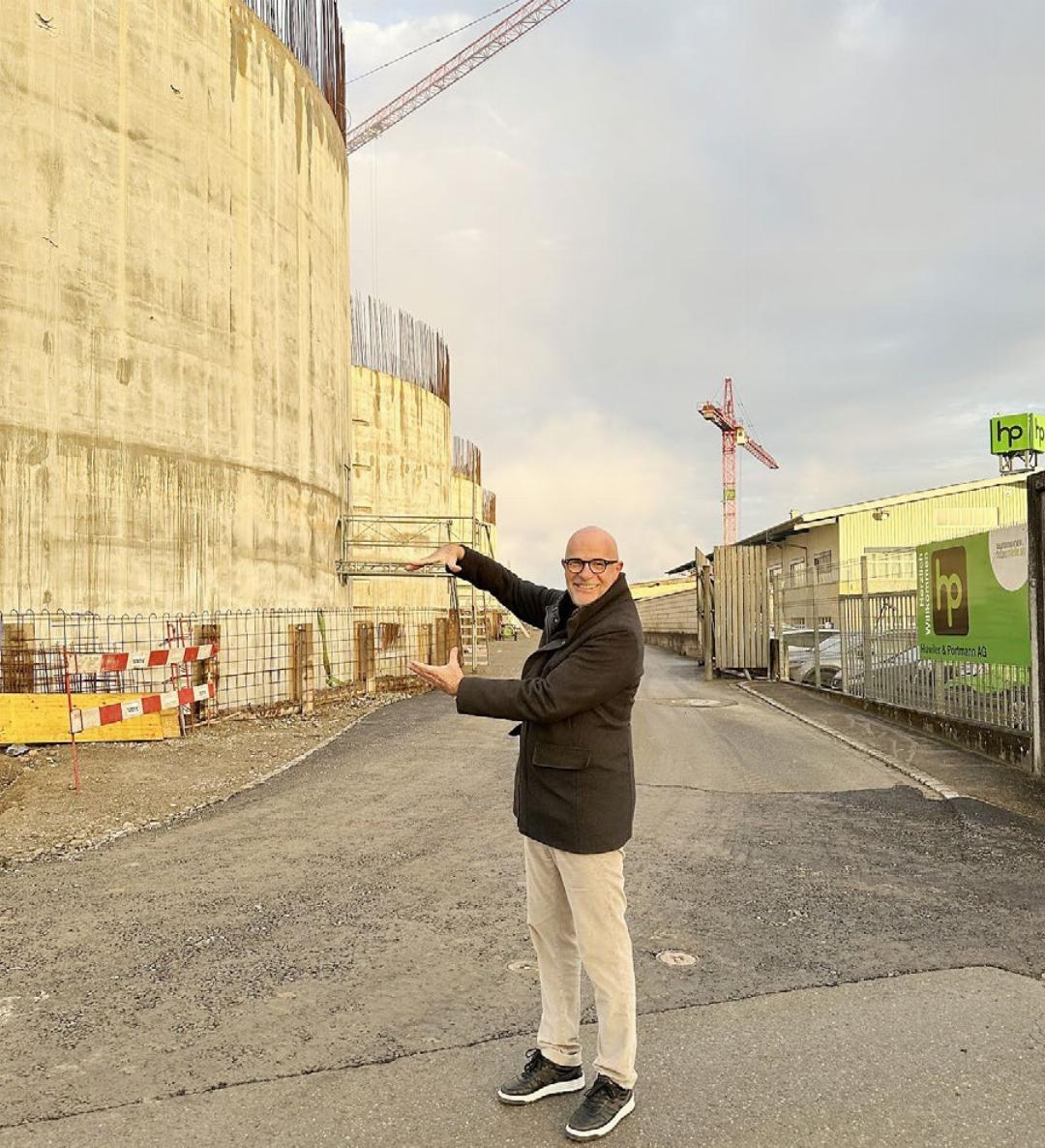 An den halbfertigen Betongärsilos geht seit Monaten nichts mehr. Der unfreiwillige Baustopp ist der Insolvenz des Produzenten der Silos geschuldet. Nun fand Werner Humbel, Inhaber der Recycling Energie AG, eine Lösung, um das Projekt doch weiter zu bringen.