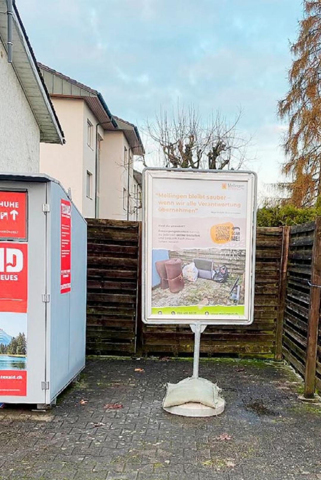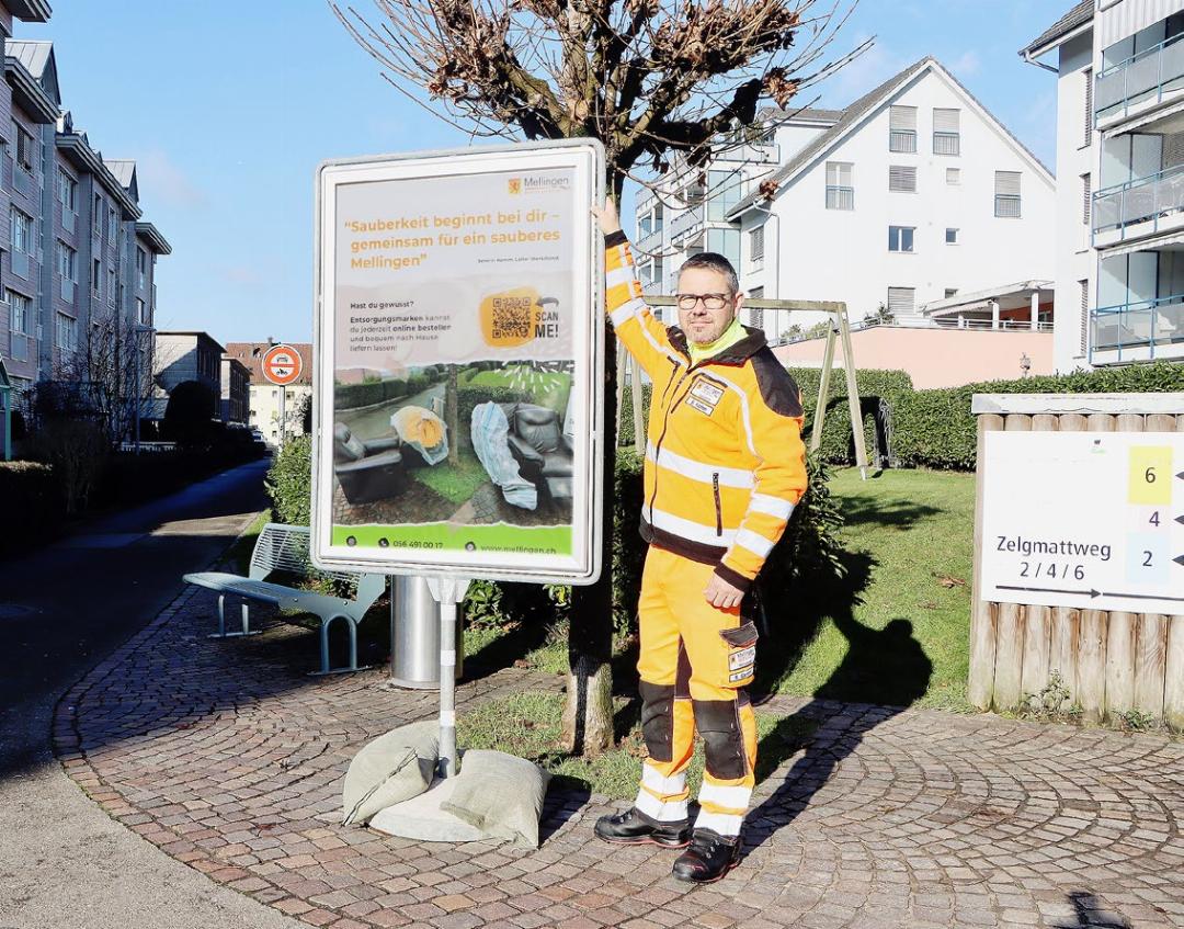 Seit einer Woche stehen an der Entsorgungsstelle an der Gheidstrasse und in der Kurve des Zelgwegs gut sichtbar Plakate. «Wir hoffen, dass es eine abschreckende Wirkung hat, wenn auf den Plakaten ein Foto vom gleichen Platz mit illegalem Müll zu sehen ist», so Kamm. Auf dem Plakat steht zudem der eingängige Spruch: «Sauberkeit beginnt bei dir – gemeinsam für ein sauberes Mellingen.» Mittels QR-Code wird erklärt, was und wie in Mellingen legal entsorgt werden kann. Weiter steht: «Weisst du, dass du Entsorgungsmarken online bestellen und bequem nach Hause liefern lassen kannst?» Würden alle sich verinnerlichen, was auf den Plakaten einfach erklärt wird, wäre Schluss mit illegal entsorgtem Hausrat. Das nach dem Motto: Entsorgungsmarke draufkleben und die Müllabfuhr nimmt ganz legal das nicht mehr gebrauchte Möbel mit.