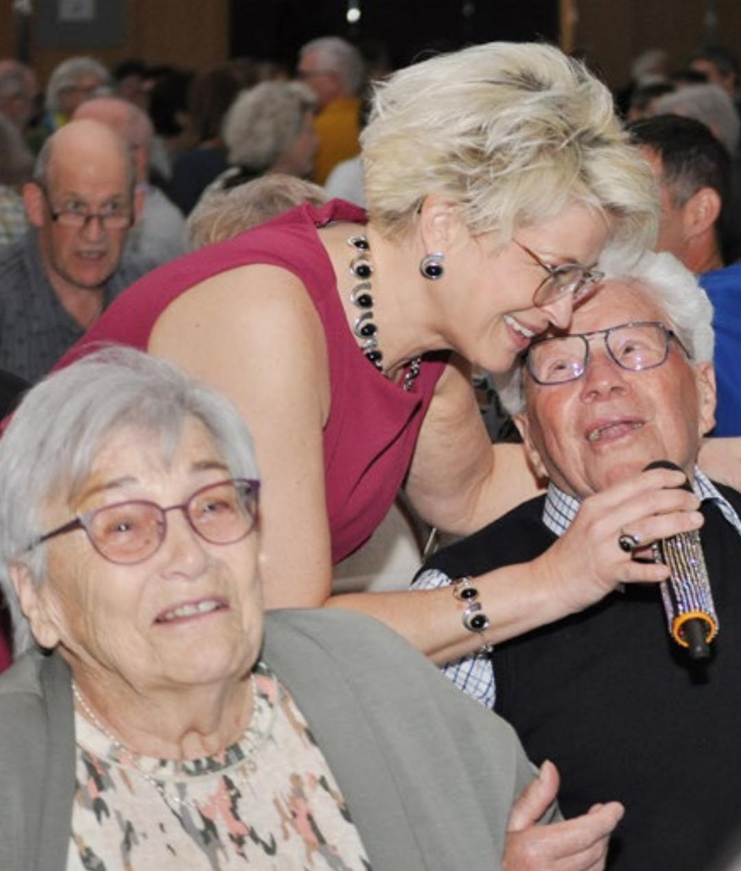Doch all die Sorgen sind natürlich unbegründet. Von Anfang an hat die Sängerin das Publikum mit ihrer herzlichen Art auf ihrer Seite – obwohl viele sie zum ersten Mal bei einem Auftritt erleben. Unterstützung gibt es ausserdem von Freunden und Bekannten aus Stetten und Umgebung. Und sogar aus dem Schwarzwald sind überraschend Fans angereist und kommen auf ihre Kosten. Als eines der ersten Lieder singt Monique ihren Hit «Einmal so, einmal so», mit dem sie 1999 den Grand Prix der Volksmusik gewann. «Beim Kufsteiner Lied» geht das Publikum dann richtig mit. «Bei mir muss man singen, klatschen, jodeln und tanzen», spornt Monique an, während sie sich unters Volk mischt: «Man weiss ja, der Rohrdorferberg ist das Brasilien der Schweiz», witzelt sie. Danach bekommt die Profisängerin gesangliche Begleitung. Die 13-jährige Simona Blunschi, Tochter eines der Musiker, singt mit ihr im Duett Anita Hegerland und Roy Blacks «Schön ist es auf der Welt zu sein», gefolgt von der Ballade «How far I’ll go» aus dem Disneyfilm «Moana». Danach rocken die beiden die Bühne mit Ike und Tina Turners «Proud Mary». Spätestens hier wird klar: Da wächst ein grosses Nachwuchstalent heran. Im Anschluss begibt sich Monique wieder auf gewohntes Terrain mit dem «knallroten Gummiboot». Viel zu schnell ist der Programmteil zu Ende – findet auch die Sängerin. «Es macht so Spass, ich will am liebsten gar nicht mehr heim», ruft sie. Als Zugabe gibt es noch ein letztes Ständchen. Mit Musiker Martin Kaufmann stimmt sie das Liebeslied «Träne» von Florian Ast an. Nach der Pause gibt die Harmoniemusik dann noch einen Vorgeschmack auf ihr Programm, mit dem sie im Mai beim Eidgenössischen Musikfest in Biel antritt und zieht dabei musikalisch alle Register.