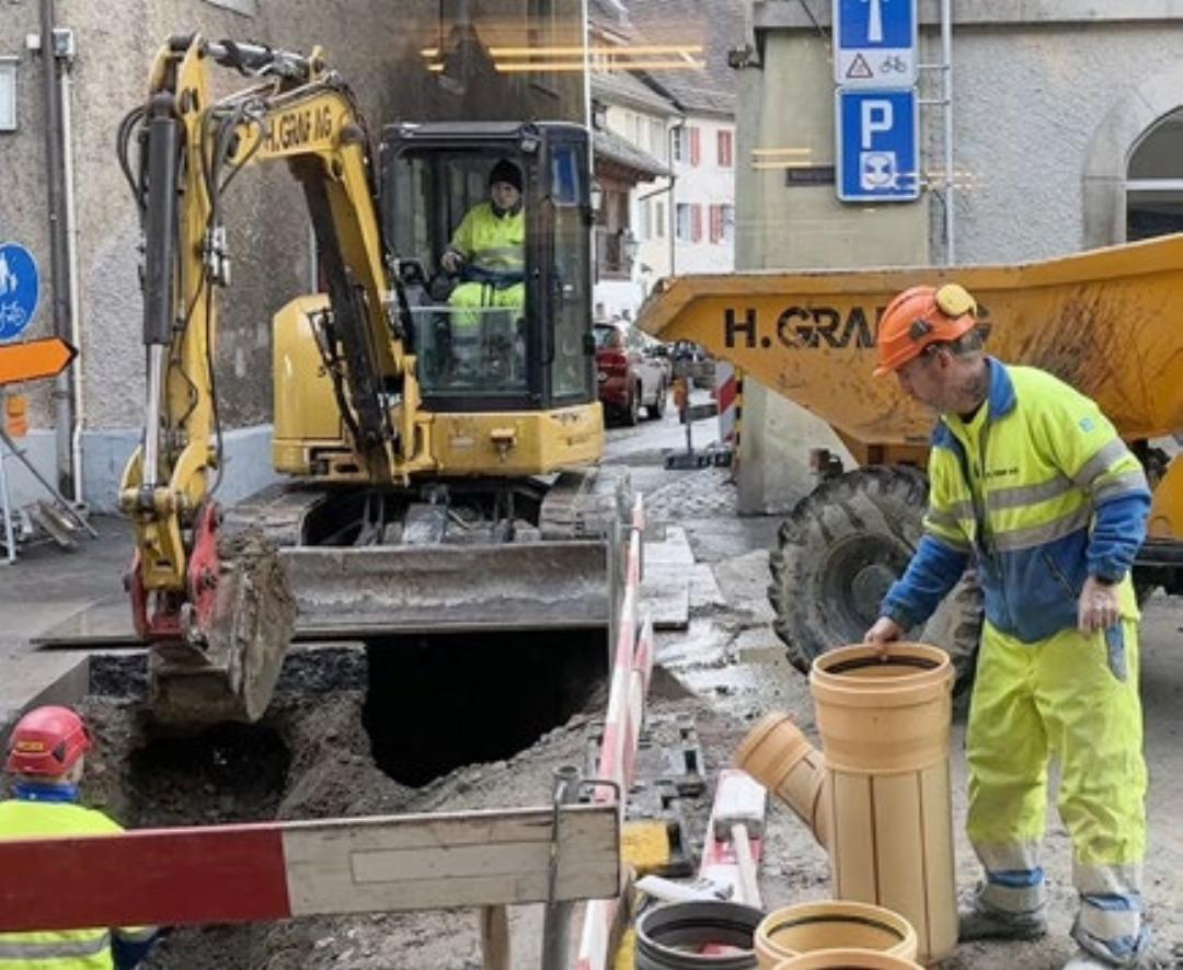 Herausfordernd bei den Bauarbeiten in der Hauptgasse seien die engen Platzverhältnisse. Zusätzlich muss auch auf Schülerinnen und Schüler, Fussgängerinnen und Fussgänger und auf Autos und Velos geachtet werden.