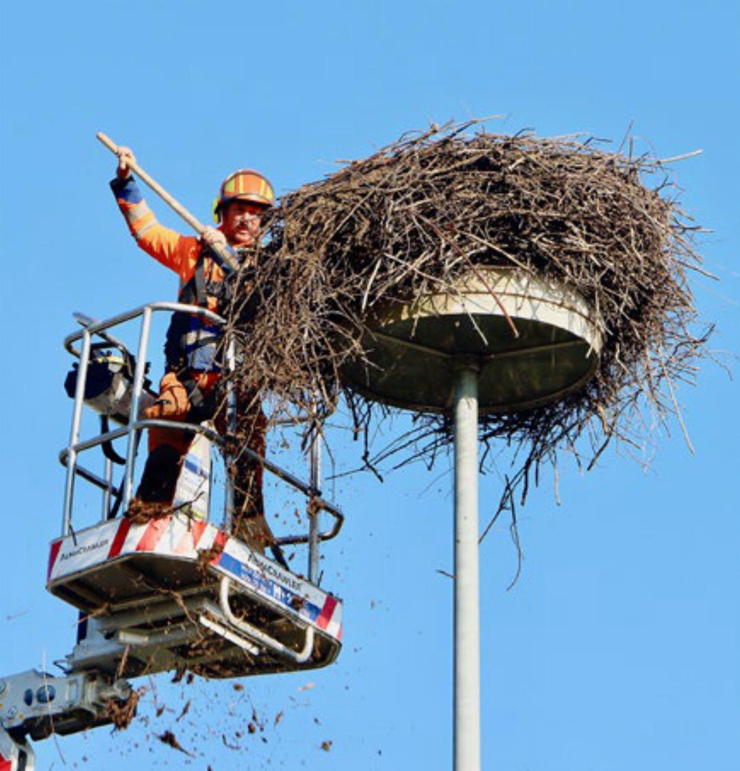 Eigentlich war nur eine Verkleinerung beim fast über 700 Kilogramm schweren Horst geplant. Doch bei den Arbeiten stürzte der Rest des Nestes in die Tiefe.