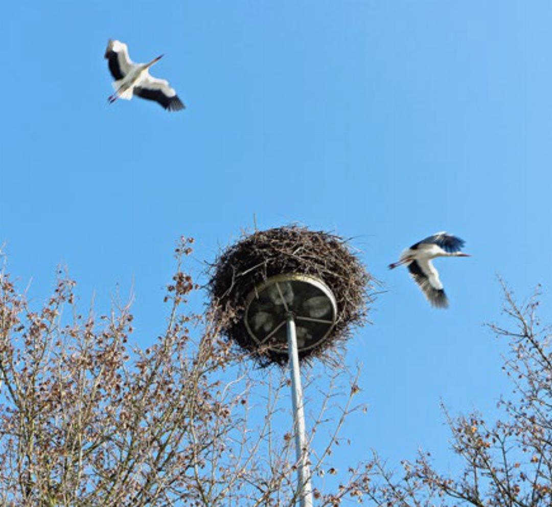 Das Storchenpaar ist vorerst ohne Wohnsitz. Das Nest auf dem Kandelaber beim Gnadenthalerkreisel wurde entfernt