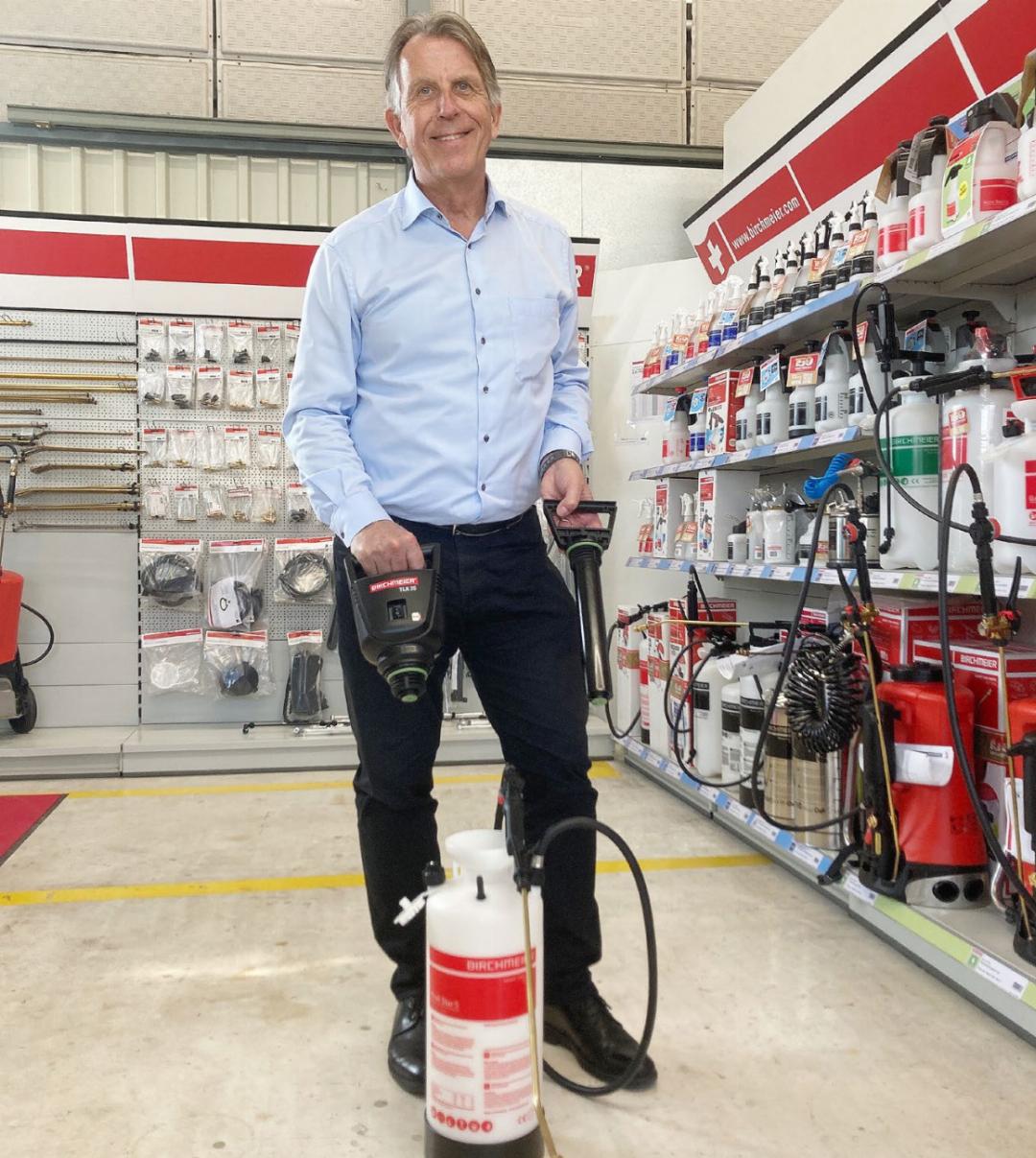 Viele Leute fragen uns, was wir für die Nachhaltigkeit tun. Dann sage ich immer: Wir sind schon seit 150 Jahren nachhaltig! Unsere Produkte sind langlebig, jedes hat Ersatzteile und kann repariert werden. Wir gewährleisten, dass das Produkt sehr lange hält. Im Gegensatz zu Einweg- und «Ready to Use»-Sprühern sind unsere Produkte sehr langlebig und erlauben ein effektiveres Sprühen. Dazu produzieren wir im Herzen von Europa und bieten kurze Transportwege. Das sind die grössten Beiträge, die wir zur Nachhaltigkeit leisten.