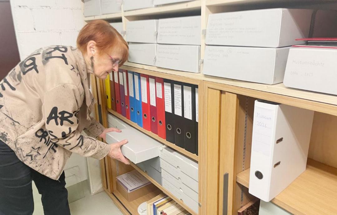 Auch anlässlich der letzten Veranstaltung unter der Ägide von Romy Studerus mit dem bekannten Schauspieler Hanspeter Müller-Drossaart («Grounding», «Cannabis» etc.) und dem Musiker Peter Gisler war es für die zahlreichen Besucher ein Vergnügen, mit den beiden Stars anzustossen und sie zu befragen; zum Beispiel Müller-Drossaart, wann sein nächstes Buch erscheint oder wann es auf ARD mit dem «Bozen-Krimi» weitergeht. Aber noch ist Romy Studerus im Kulturzentrum ganz unten im Keller anzutreffen. Denn ohne ein sauberes Archiv für die Nachwelt geht man nicht so einfach von der Bühne. Wir stehen zwischen Schachteln, Ordnern und Schubladen. Sie zieht da und dort einen Karton hervor, durchblättert handschuhbewehrt durch historische Negativ-Fotografien und blättert Programmflyer und Werbedrucksachen auf. Ein wahrer Fundus für alle Nachkommen, die mal wissen möchten, wer schon in Fislisbach hier im Dorfmuseum oder in der Aula auf der Bühne stand. Da sehen wir grad die Drucksachen mit Mike Müller, Pedro Lenz oder Knut und Tucek, die alle vom Team der Gruppe «Kultur in Fislisbach» eingeladen wurden. Vorsichtig verräumt sie wieder die Dokumente und wir gehen zwischen historischen Werkbänken der verschiedensten Handwerkskünsten aus alter Zeit und einer mächtig beeindruckenden Ausstellung zur Geschichte der Dorffeuerwehr vorbei wieder hoch in den hellen Saal oben unter dem Dach. Die Pizzaschachteln sind entsorgt, das Geschirr gespült, fast alle Notizen gemacht und bevor wir uns wieder aufmachen, muss die Frage doch noch sein, was sie nach so vielen Jahren im Kulturzentrum und nach so einem gelungenen Programmabschluss nun plant. Da gilt es nicht lange zu zögern. Selbstredend ist das Leben für die Familie samt Enkelkinder ohne Kultur undenkbar.