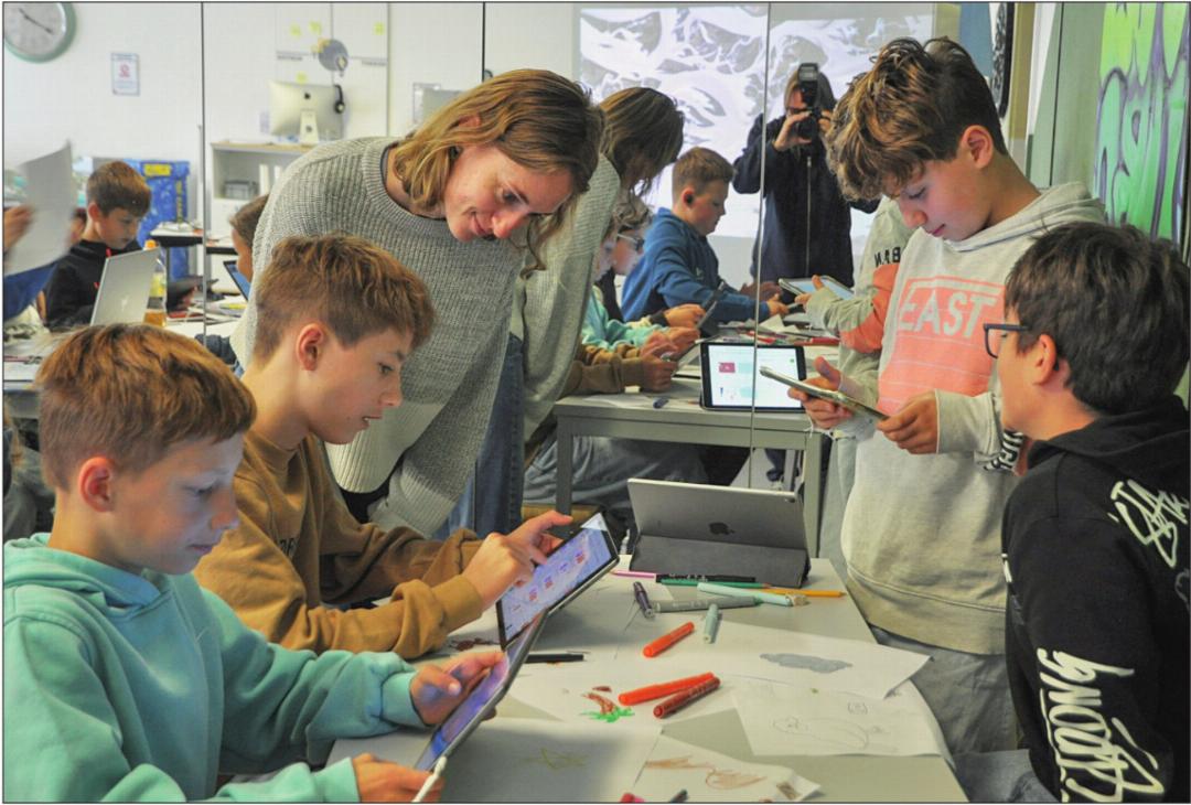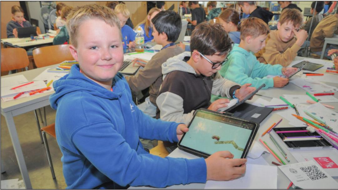 Komme ich überhaupt zur richtigen Uhrzeit?», frage ich mich für eine Schrecksekunde. Denn aus dem Jugendbüro der Mojuro dringt kein Laut. Beim Öffnen der Tür dann die Erleichterung: Der Raum ist voll, der Workshop völlig ausgebucht. Die Jungen und Mädchen von der 4. bis zur 7. Klasse sind hoch konzentriert bei der «Arbeit»: Die einen sind noch mit Stift und Papier zugange, während andere bereits auf ihren iPads herumklicken. «Internet und Social Media gehören zu unserer Gesellschaft», erklärt Jugendarbeiterin Valerie Mäder – das gilt auch für das Spielen an Konsolen oder dem Computer. Beim Workshop sollen die Kids verstehen, wie viel Arbeit hinter solchen Games steckt. Aber in erster Linie geht es natürlich um den Spass: «Sie können richtig kreativ sein, auch mal etwas ausprobieren und lernen dranzubleiben», so Mäder.