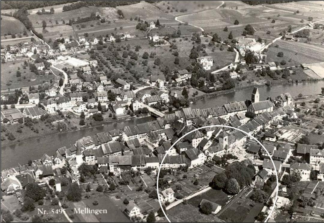 Der Lindenplatz war schon früher grün. Das zeigt eine Luftaufnahme von 1953 (siehe Postkarte). Entlang der Mauern liegen Richtung Hexenturm dicht an dicht Vorgärten, spärlich durchsetzt von Sträuchern und Bäumen. Statt der Birrfeldstrasse, die erst 1959 als breite Strasse gebaut wurde, gibt es einen Feldweg. Hohe Bäume stehen dort, wo heute die Post und weitere Gewerbebauten angesiedelt sind.