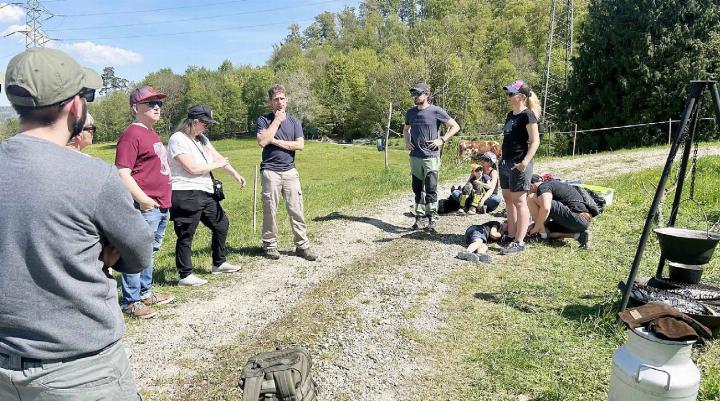 Auf der einen Weide grasen kleine, kräftige Rinder. Auf der anderen Weide liegen Schafe im hohen Gras – auch zwei grosse Hunde liegen bei den Schafen, farblich kaum zu unterscheiden. Und auf dem Feldweg dazwischen erzählt Landwirt Thomas Strebel, warum er auf seinem Hof manche Sachen ein bisschen anders macht, als andere Landwirte (Bild). Er erzählt, warum er seit einigen Jahren mit zwei Herdenschutzhunden arbeitet, die seine Schafe führen und beschützen. Er erklärt auch, warum eine Hälfte seiner Kühe viel kleiner und kräftiger ist als die andere Hälfte. So viel sei hier verraten: Es ist eine alte Rasse, die auch am Hang ihren Weg leicht findet. – Lesen Sie weiter auf Seite 8. (hhs)