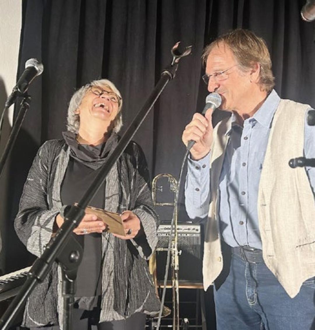 Nach einer Zugabe nahm Kommissionsmitglied Christof Messmer das Mikrofon in die Hand und bat Maja Pfister erneut auf die Bühne. Er bedankte sich bei ihr dafür, dass sie mit viel Herzblut alles gegeben und die Kommission in kollegialem Stil geführt habe. Ein Engagement, das sich auch beziffern lasse. «Während ihrer Zeit als Präsidentin», sagte Messmer, «wurden 81 Kulturanlässe organisiert, die von rund 6200 Zuschauerinnen und Zuschauern besucht wurden, ausserdem wurden 156 000 Franken an Gagen an die Kulturschaffenden ausbezahlt.» Dann überreichte Christof Messmer ihr eine kleine «VIP-Karte», die ihr lebenslang einen Gratis-Eintritt bei den Anlässen der Kulturkommission zusichert. Diese Karte hatte Maja Pfister einst selbst erfunden und kreiert – schon damals, um ein langjähriges Mitglied zu ehren. Und schliesslich stimmten die «Shabber Nacs» zum Abschied «Vielen Dank für die Blumen» an und dazu sangen in der Alten Kirche nicht wenige mit.