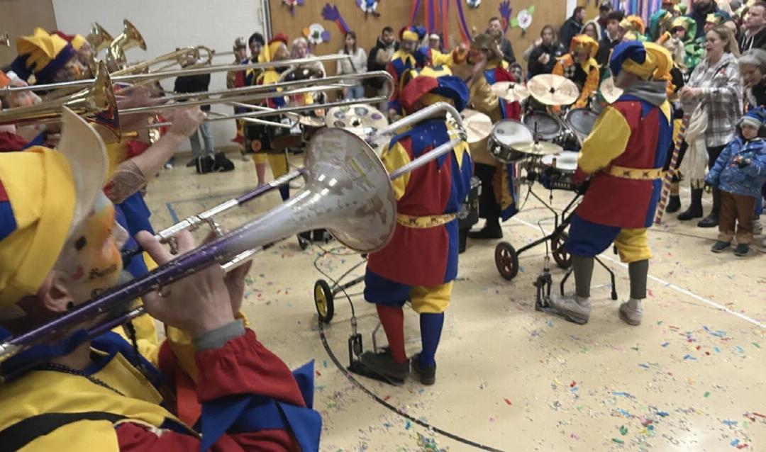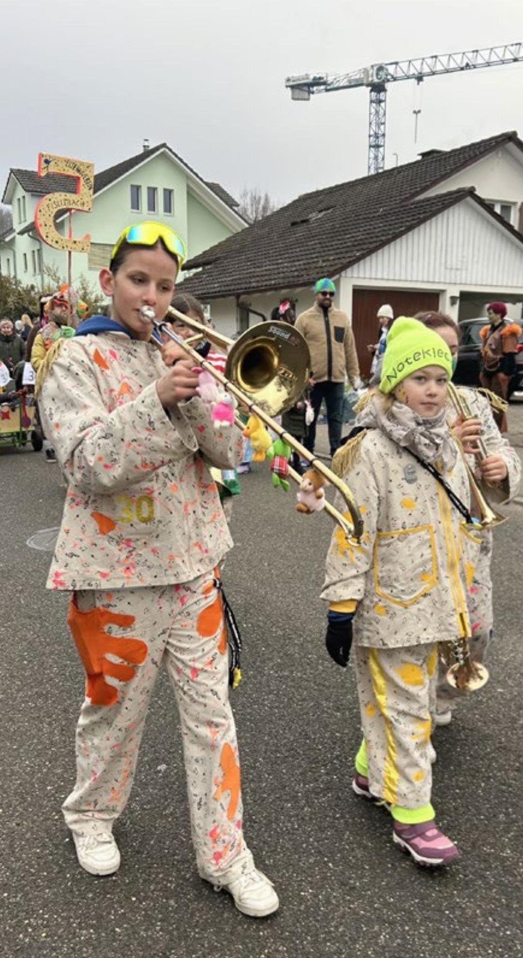 Beim Schulhaus Leematten endete die Parade. Hier begann der Ball, wo sich die Guggen sozusagen die Klinke reichten und eine um die andere in der Turnhalle zum Jubiläum aufspielte. «Ich bin überwältigt», bilanzierte OK-Chefin Gabriela Dürst. Von den vielen Teilnehmenden, die aktiv beim Umzug oder als Zuschauende am Strassenrand dabei waren, und von der tollen Stimmung.